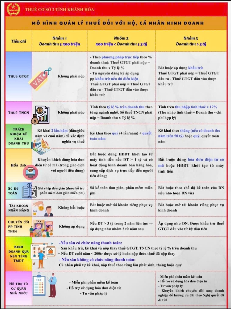 – Từ ngày 01/01/2026: Chính thức xóa bỏ phương pháp thu thuế khoán. Hộ kinh doanh bắt buộc phải chuyển đổi sang phương thức kê khai hoặc chuyển đổi thành doanh nghiệp.