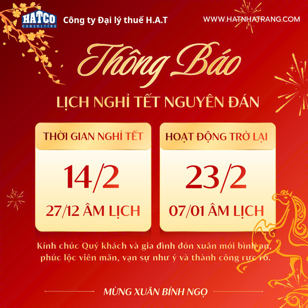 Trong không khí hân hoan chào đón Tết Nguyên Đán 2026, Công Ty TNHH Đại Lý Thuế H.A.T xin gửi lời tri ân sâu sắc đến Quý vị đã luôn tin tưởng, đồng hành và ủng hộ chúng tôi trong suốt thời gian qua.